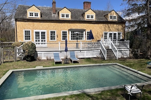 Restored country cottage furnished with antiques, fine furnishings & oriental rugs. New gunite in-ground pool and terrace. Wonderful scenic dirt road walking or bike riding through historic estate neighborhood. Relax or dine with a bbq on the flagstone terrace poolside surrounded by new dawn climbing roses, hedges and blue hydrangea.